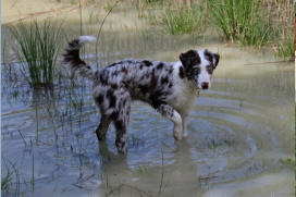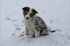 Herz an eine kleine blue merle Hündin. Mir gefiel der kleine red merle Rüde auch in Natura, ebenso wie eine seiner
